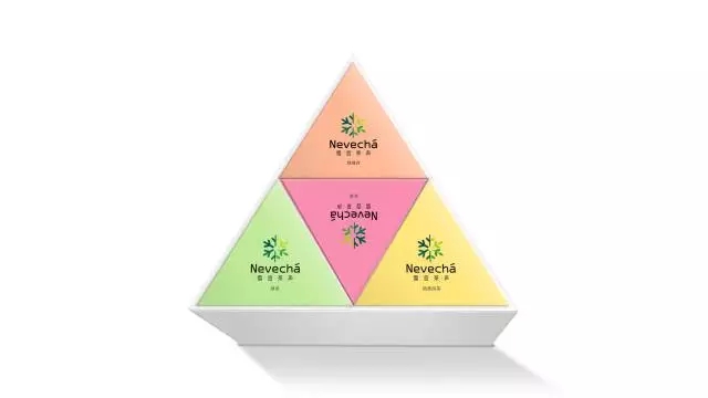 設(shè)計(jì)元素采用“雪宜茶聲”LOGO標(biāo)識為主題,增加品牌識別度和市場印象;禮品包裝插畫風(fēng)格,運(yùn)用雪花、茶壺、小石塊、綠色植物、鳥蟲等元素,勾勒出一幅生態(tài)、自然、安逸場景,突出包裝清新自然的視覺效果;包裝盒采用三角型的形式設(shè)計(jì),即便于禮盒裝的組成,又突出年輕人對喝茶的一種精神訴求,喝茶就是享受生活,追求夢想,釋放青春的一種平衡性;內(nèi)包裝盒色調(diào)根據(jù)不同茶類型,選用不同色彩,但整體視覺主要以淡雅、粉嫩為主,即符合茶的原本形態(tài),又迎合了時(shí)尚化、年輕化創(chuàng)意。