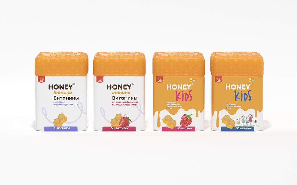 Yes, you are quite right: these goodies are 99% pure honey, a natural remedy! Such a product requires honey sweet packaging. Also, in order to stress the product′s remedial properties, we had to lean towards the medical look. At the same time, we had to preserve the balance between the drugstore and the daily consumption concepts. And you know what? We can say with confidence that our team managed to find the honey equilibrium!