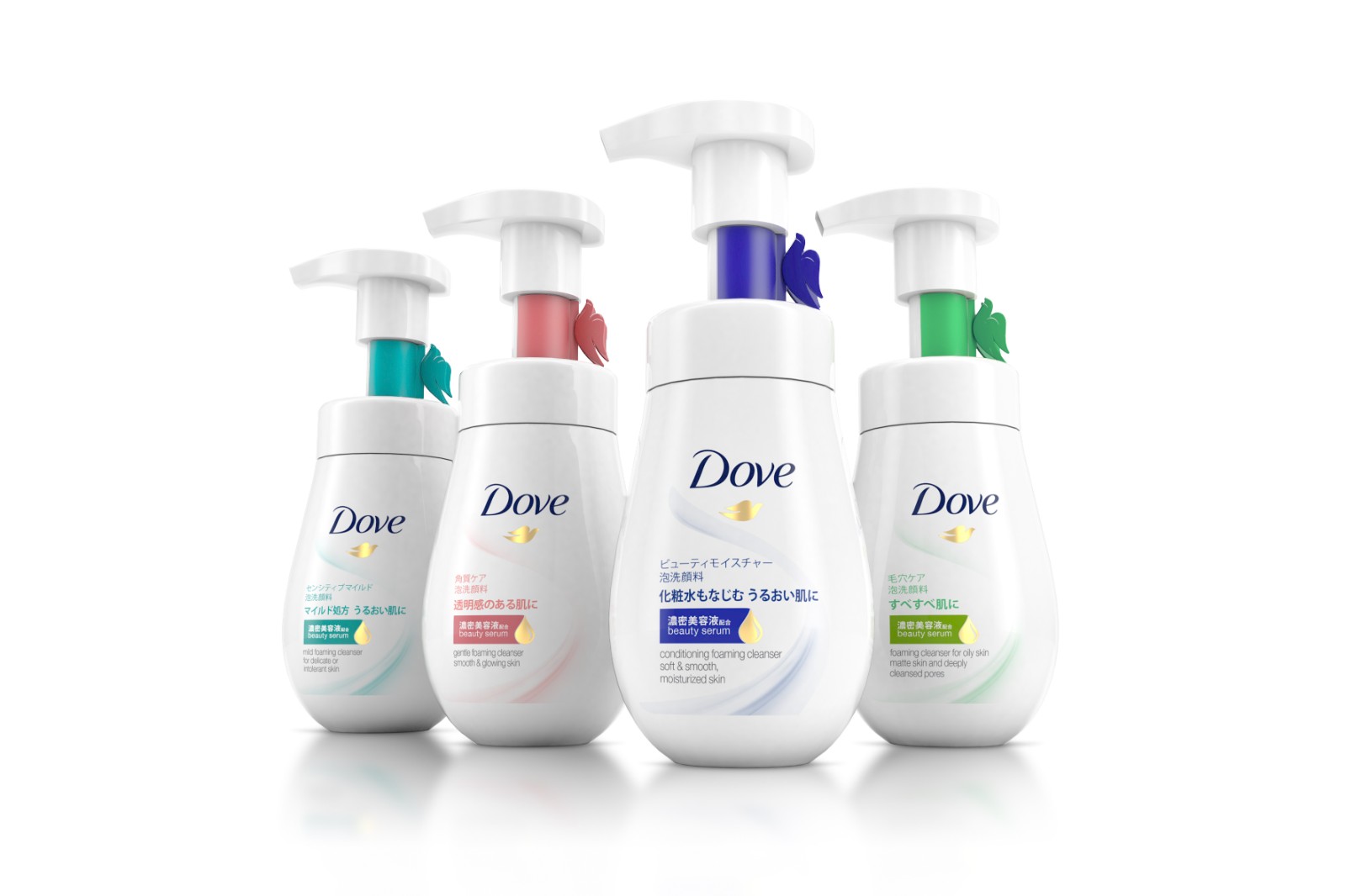 我們?yōu)楹诵南盗械乃凶凅w更新了 2D 初級包裝,包括洗面奶、泡沫潔面乳和補(bǔ)充包。由于小日是 Dove 的一個(gè)重要市場,新鮮事物本身往往會推動(dòng)人們對(xiao ) 日的渴望,因此我們還設(shè)計(jì)了注意力貼紙 (ATS)。