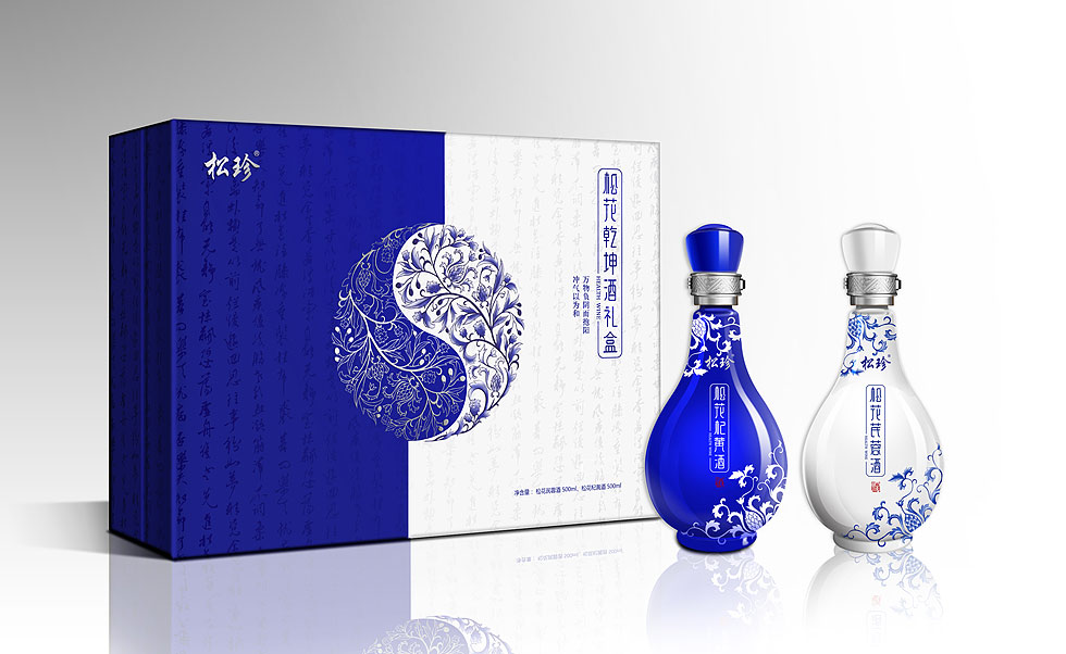 項(xiàng)目背景:“善補(bǔ)陽者,必于陰中求陽,則陽得陰助而生化無窮;善補(bǔ)陰者,必于陽中求陰,則陰得陽生而泉源不竭?!彼苫ㄜ稳鼐?、松花杞黃酒包裝設(shè)計(jì)以太極為基礎(chǔ)概念,考慮融合太極、乾坤理念,單品可以銷售,兩瓶酒相聚亦可形成乾坤禮盒。