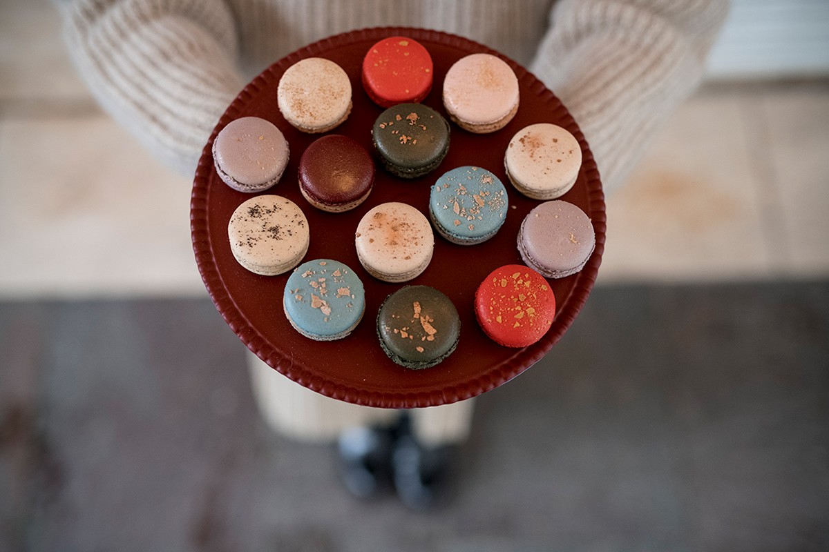 馬卡龍,又稱瑪卡龍、法式小圓餅,是一種用蛋白、杏仁粉、白砂糖和糖霜制作,并夾有水果醬或奶油的法式甜點??诟胸S富,外脆內(nèi)柔,外觀五彩繽紛,精致小巧。